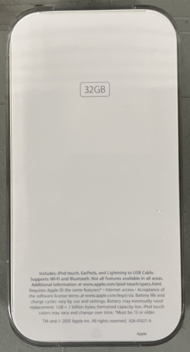 Genuine Apple iPod Touch 6th Generation 32 GB Space Gray MKJ02LL/A Media Player.