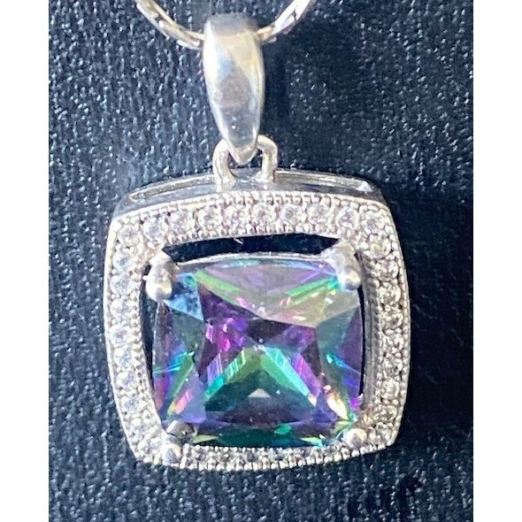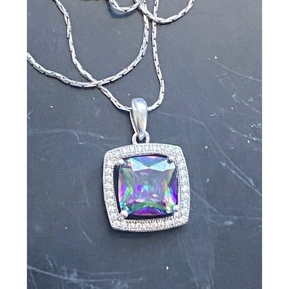 925 Sterling Silver Mystique And Colorless Gems Pendant Necklace Sky