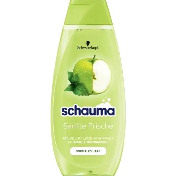 Gentle Freshness ? The Schauma Shampoo Gentle Freshness is the perfect care for normal hair. It thoroughly cleanses and refreshes the hair,With apple nettle - The mild shampoo with apple nettle extract gives an intensively supple, nourished soft hair feeling,Vegan formula - The formula is vegan* and silicone-free. The bottle body is also made from 98% recycled plastic**, the lid is made from 25%. It's Schauma time - our range of vegan* hair care products is suitable for all hair types and the whole family. Schauma - care for what is important to you,Easy to use - distribute gently into damp hair and leave to act briefly. Don't forget to turn off the tap to save water. Then rinse thoroughly