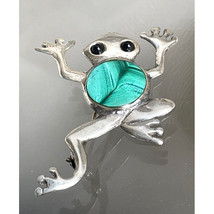 925 Sterling Silver Malachite And Onyx Dancing Frog Brooch Sky