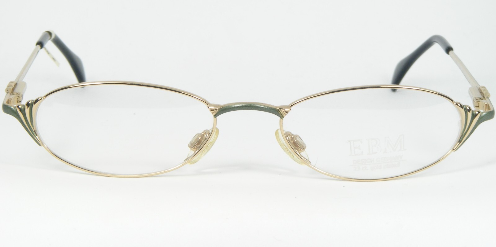 Vintage EBM 1289 Col. G GOLD /GREEN 23 ct. gold plated EYEGLASSES 51-17-130mm. (L802) Includes: Non-Branded hard case, cloth pouch bag and cleaning cloth. Actual photos of these glasses. This is exactly what you will receive. Style and comfort in everyday use. A pair of glasses is not just an accessory; it provides the first hint of an individual?s personality. The wearer must enjoy a frame and feel that it is completely consistent with his or her look and mindset. A great pair of glasses, with all its detail and complexity must above all be an extension of the individual. Returns are always FREE for any reason. If you don't like it, simply click "Item no longer needed". Item should be returned within 60 days as UNUSED in original packaging. If you have any questions please feel free to