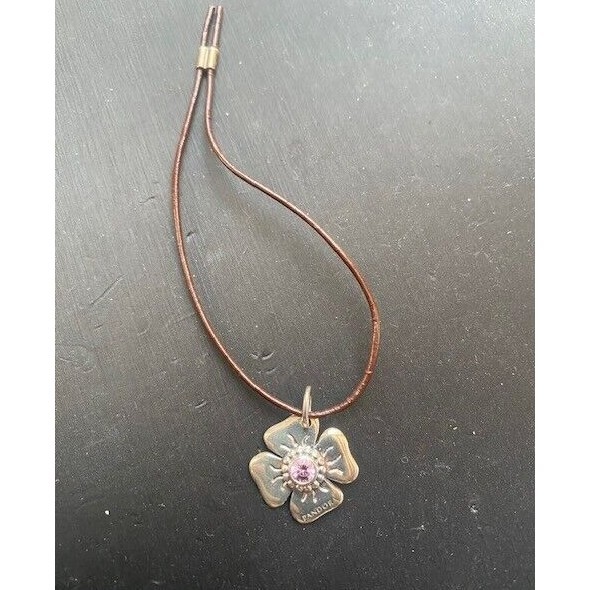 PANDORA 925 STERLING SILVER LEATHER SHAMROCK WITH PURPLISH GEM CHARM BRACELET SKY