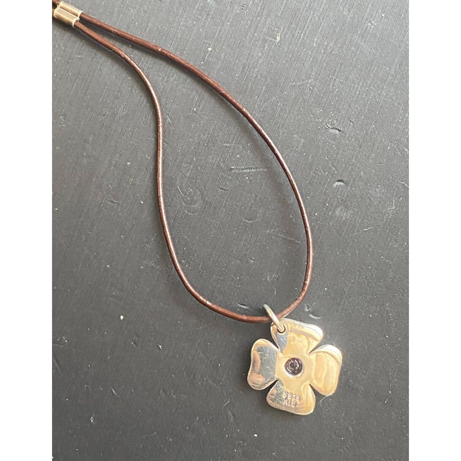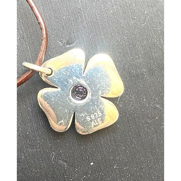 Pandora 925 Sterling Silver Leather Shamrock With Purplish Gem Charm Sky