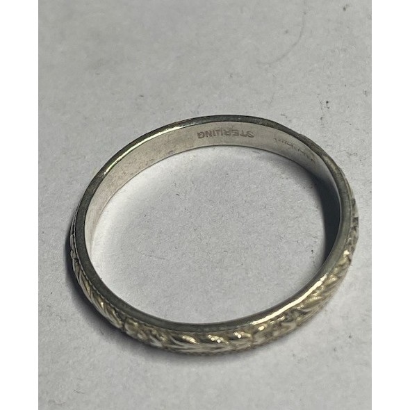 MEN'S 925 STERLING SILVER ENGRAVED FOLIATE DESIGN WEDDING BAND RING SIZE 11.75 SKY