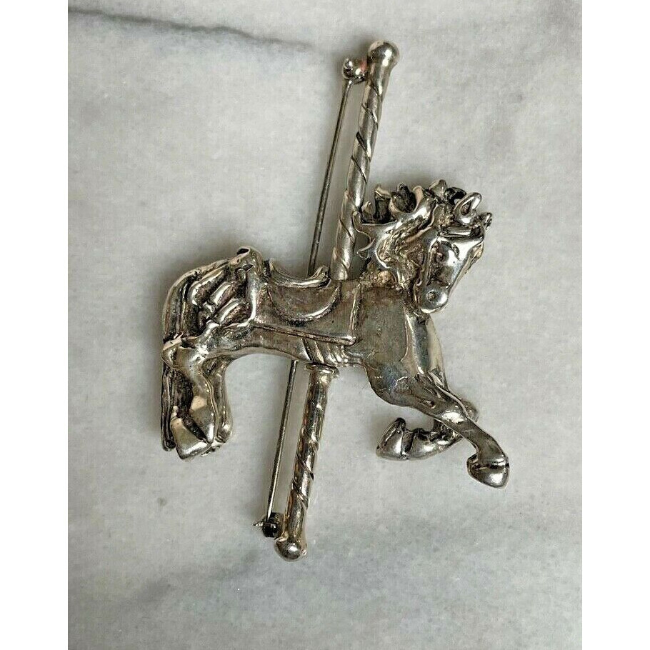 'artistic Triumph'' 925 Sterling Silver Movable Carusel Horse Brooch Sky