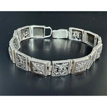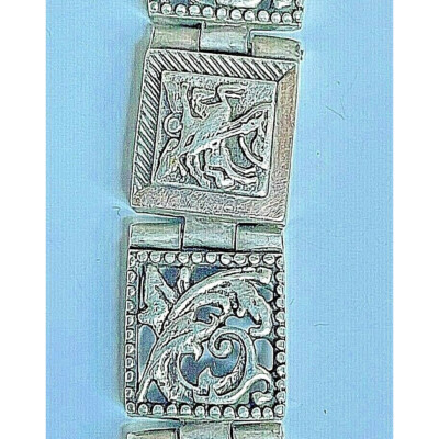 SIZE:APPROX.8 1/2'' x 3/8''.WEIGHT:41.5 GRAMS.THE BRACELET IS CONSTRUCTED OF ORNATE SQUARE LINKS WITH APPLIED 9K(375) YELLOW GOLD SECTIONS ON EVERY OTHER LINK.