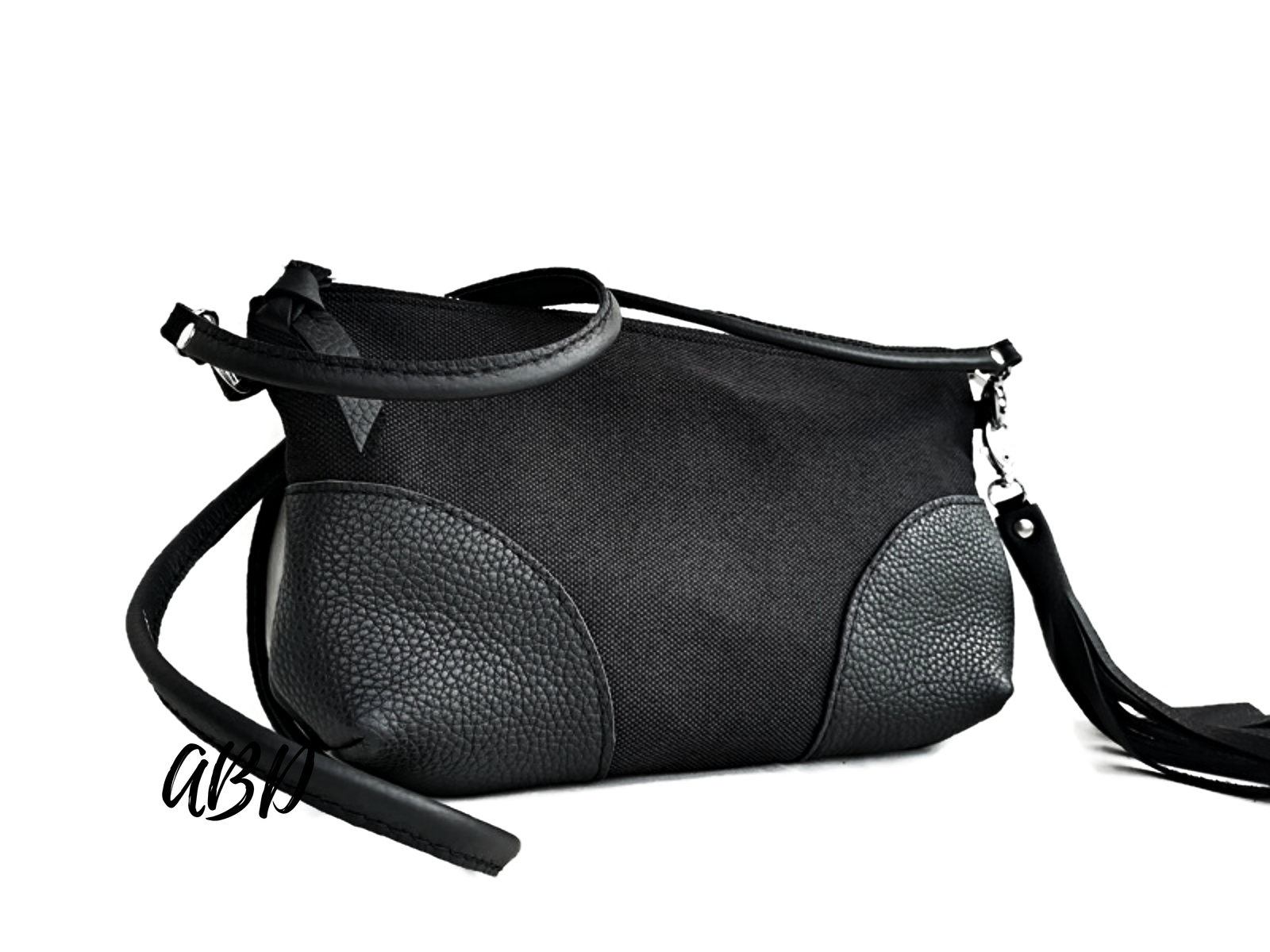 Small Black Canvas and Leather Crossbody Bag – Everyday Minimalist Bag