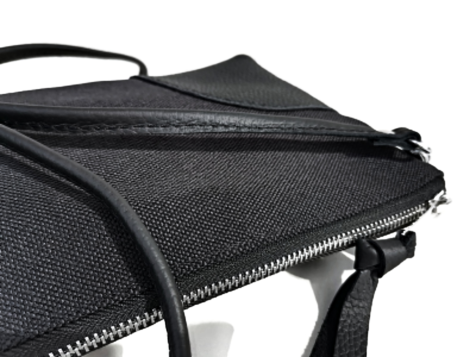 Thick genuine leather, cotton canvas, metal zipper, cotton lining.