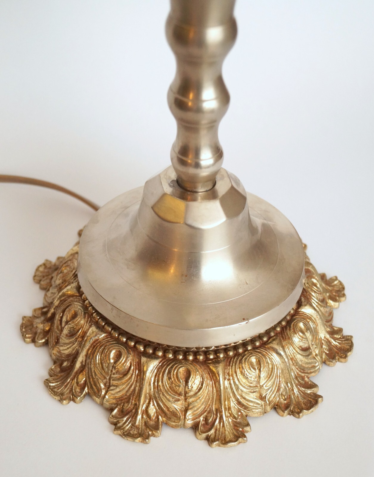 Nickeled and beautifully patinated brass gear with gold-colored cast base.
