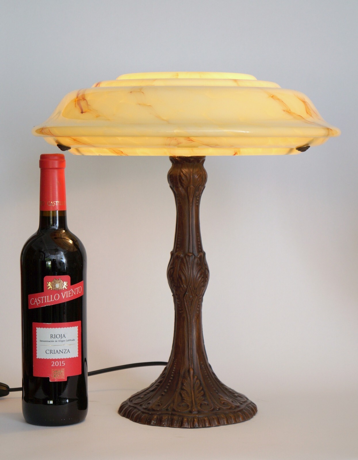 Classic original Art Deco desk lamp "Marble Wood" 1930 lamp (no.