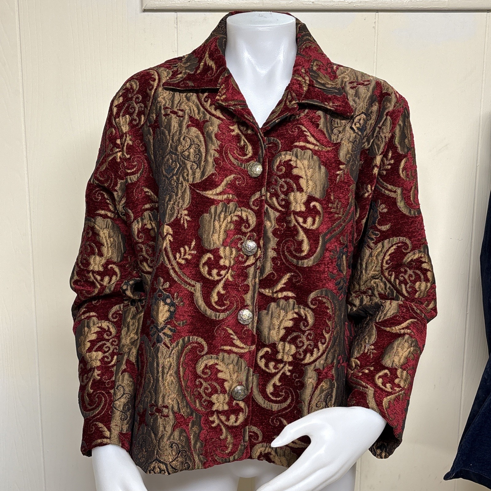 DB Sport Tapestry Velvet Jacket Womens M Ruby Gold Blazer Embroidery Vintage