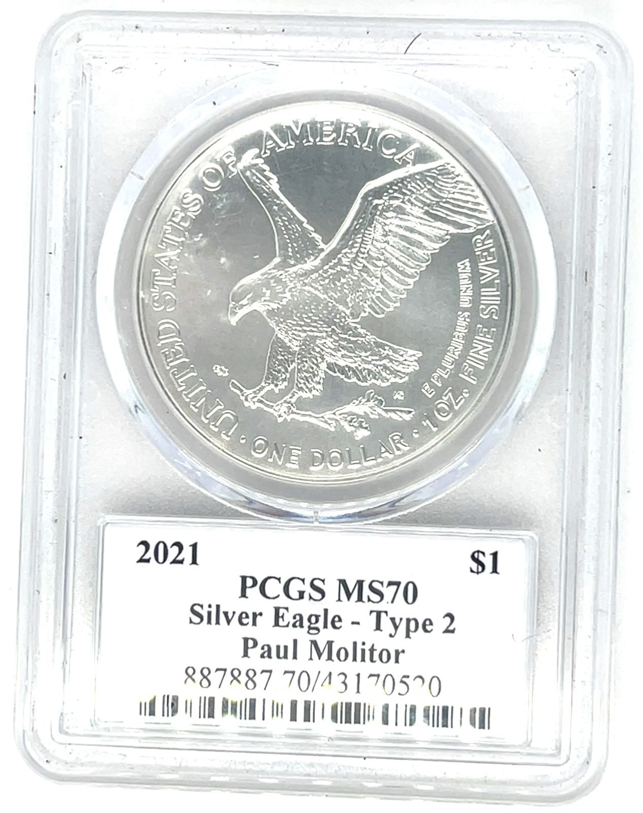 Aigle Américain En Argent S$1 2021 T2 PCGS Paul Molitor MS70