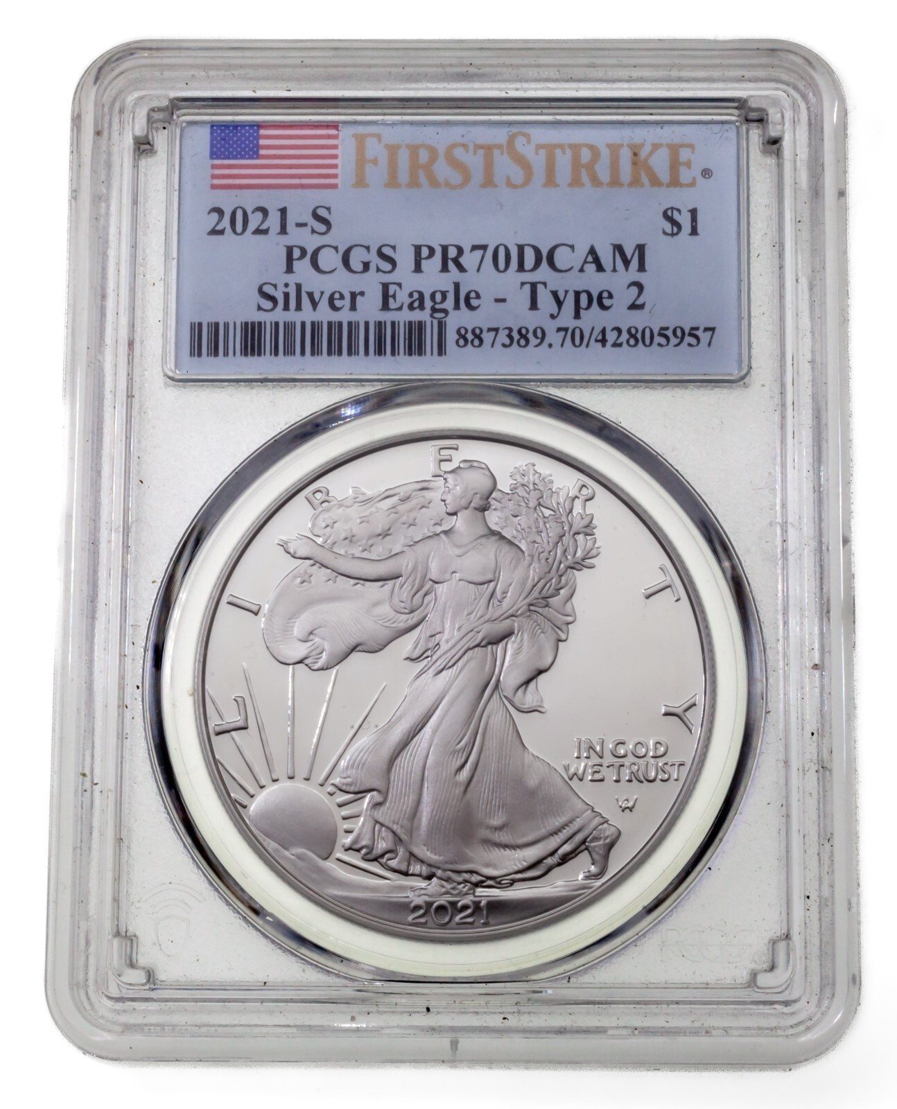 2021-S Argento American Eagle Prova Tipo 2 Selezionato Da PCGS Come PR70DCAM 1st