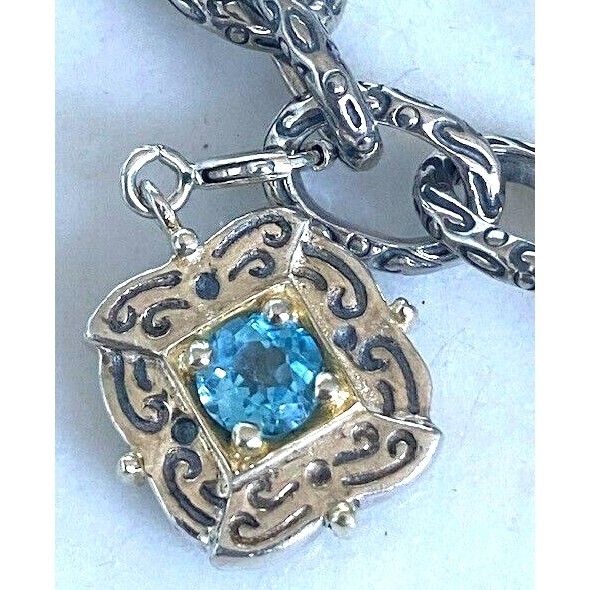 ORNATE 925 STERLING SILVER TOPAZ AND BLACK SPINEL CHARM BRACELET SKY