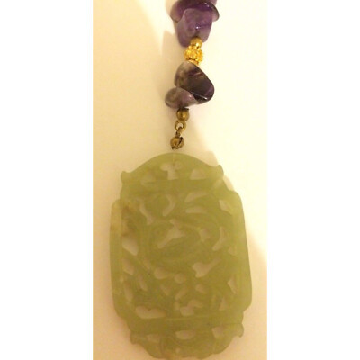 Vintage Amethyst 8 Jade Necklace W/ Carved and 28 similar items