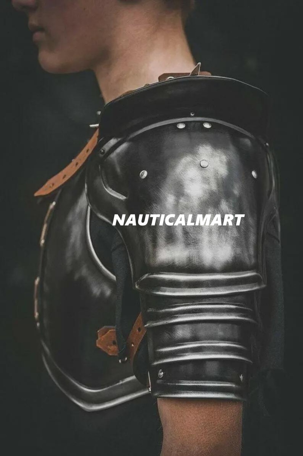 The set includes Pair of pauldrons/Cuirass/Helmet/One Bracer