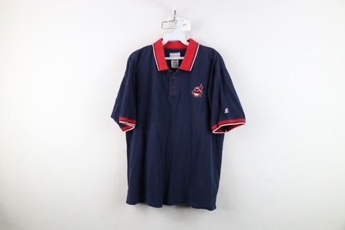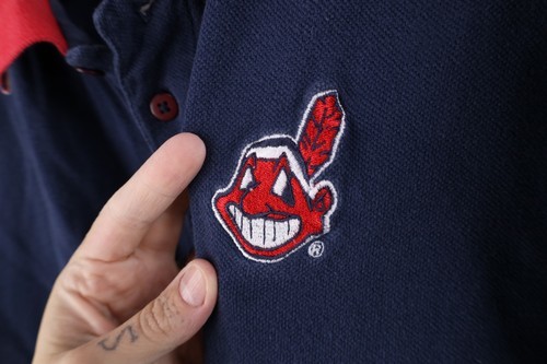 Vintage 90s Mens Medium Faded Chief Wahoo Cleveland Indians Baseball Polo Shirt