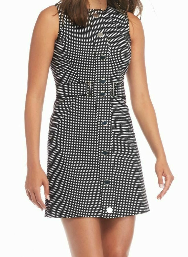 Michael Kors Black White Checked Front Snap Button Mini Dress Size 14 NEW