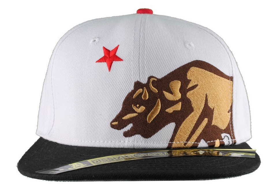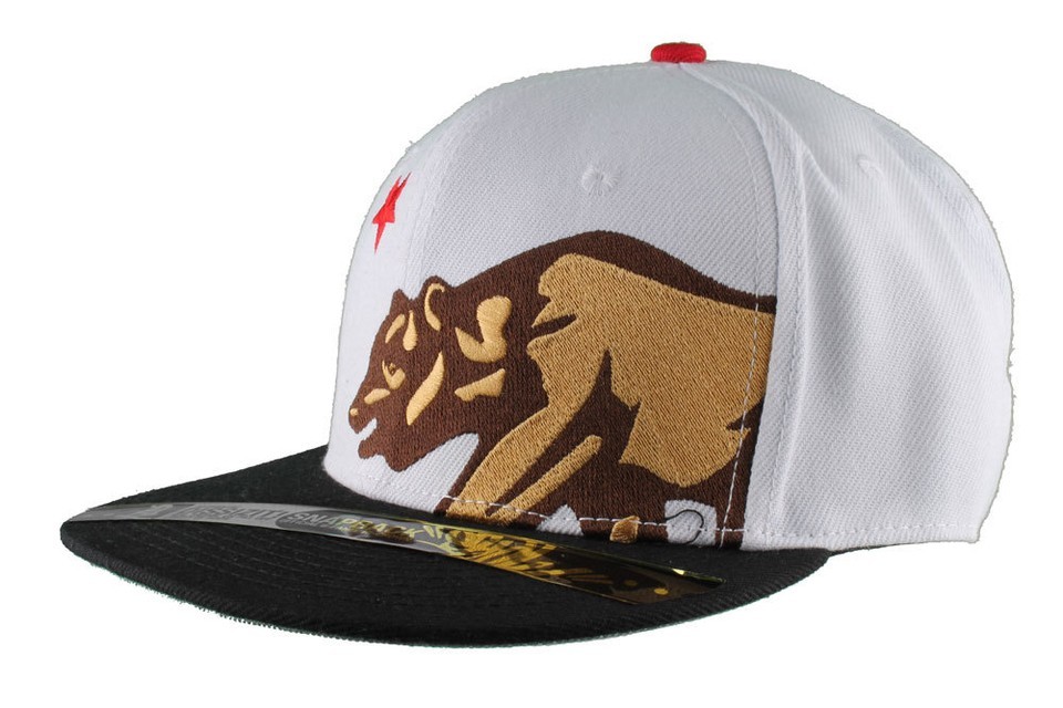 Dissizit! Side Bear White Black Brim Snapback Cap Hat California Star Flag