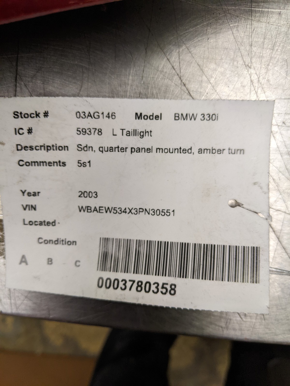 Purchased Bmw Tail Light on Bonanza