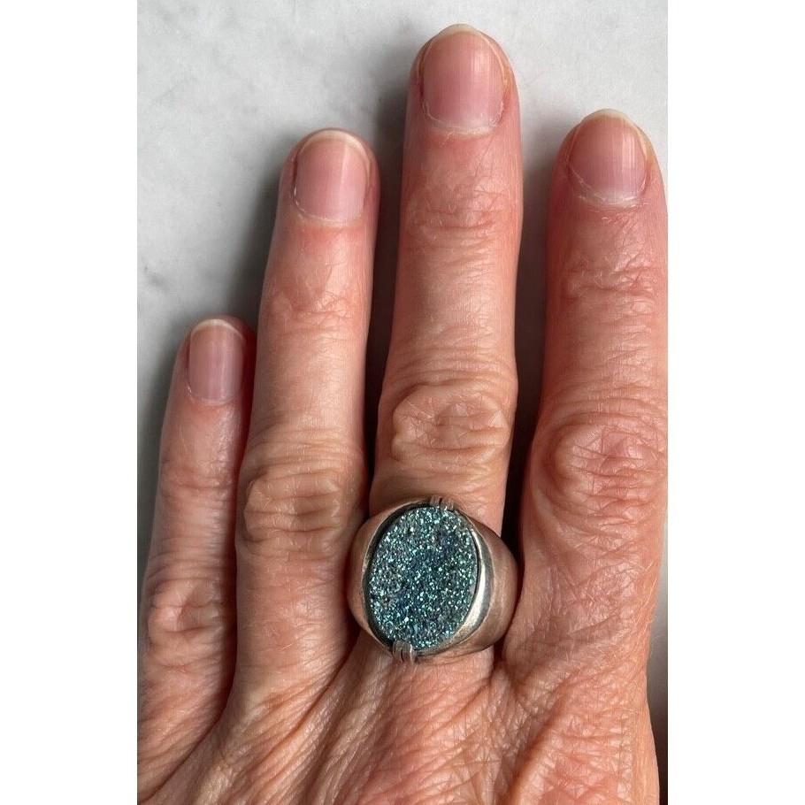 925 Sterling Silver & Druzy Quartz Ring Size and similar items