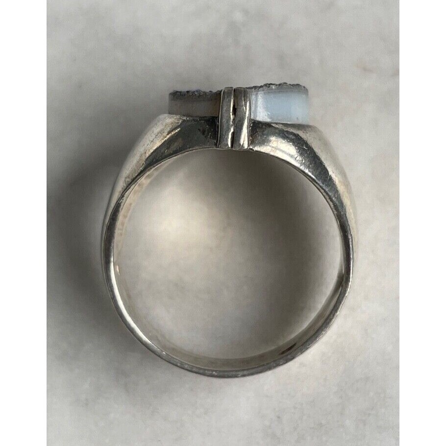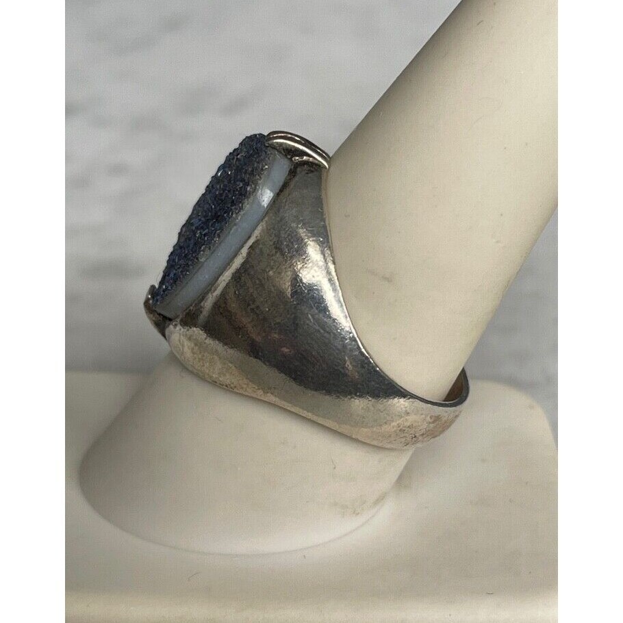 925 Sterling Silver & Druzy Quartz Ring Size 9.5 Sky