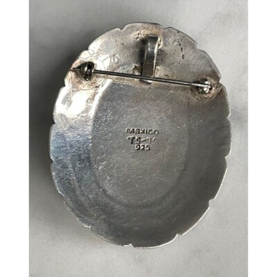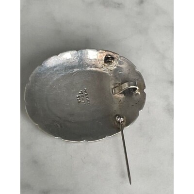 VINTAGE TAXCO NAVAJO DESIGN 925 STERLING SILVER AND ONYX CONCHO BROOCH/PENDANT SKY
