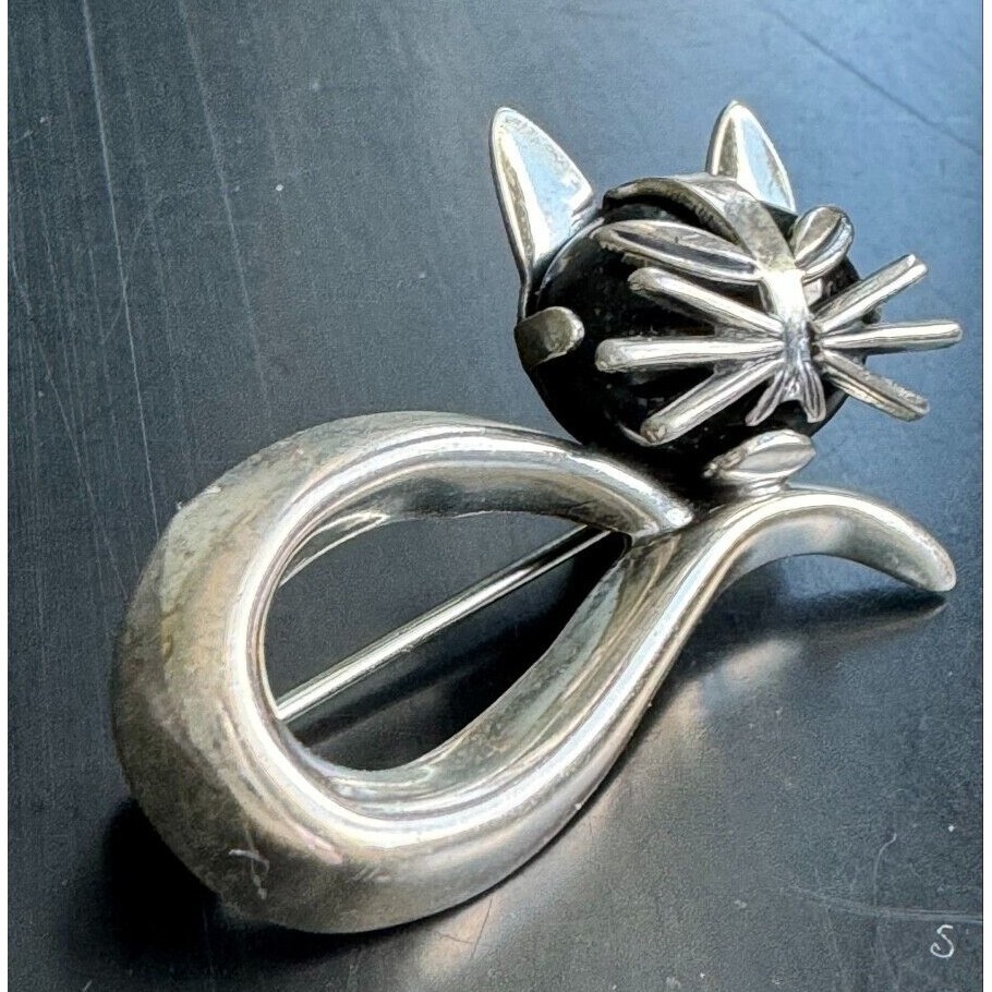Beau 925 Sterling Silver And Onyx Kitty Cat and 50 similar items