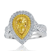 Certifie GIA 3.52 CT Poire Lumiere Jaune Anneau Fiancailles Diamant 18k or Blanc