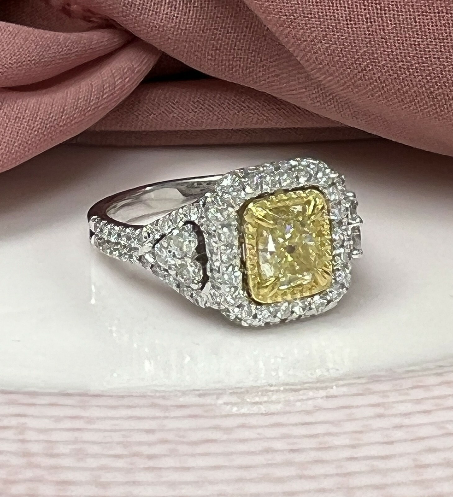 2.68 Carat Coussin Lumiere Jaune Anneau Fiancailles Diamant 18k or Blanc