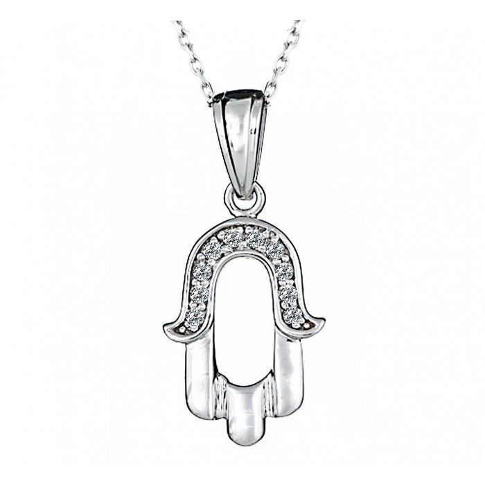 Diamond Hamsa Hand Pendant Collier juif 16 "14K Or blanc 0,19 CT