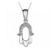 Pendentif Main Hamsa En Diamant Juif Collier 16" Or Blanc 14k 0,19 CT