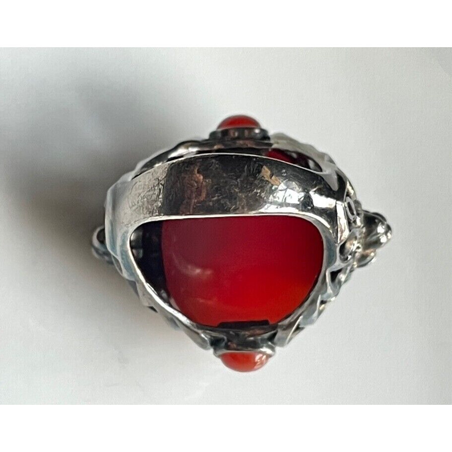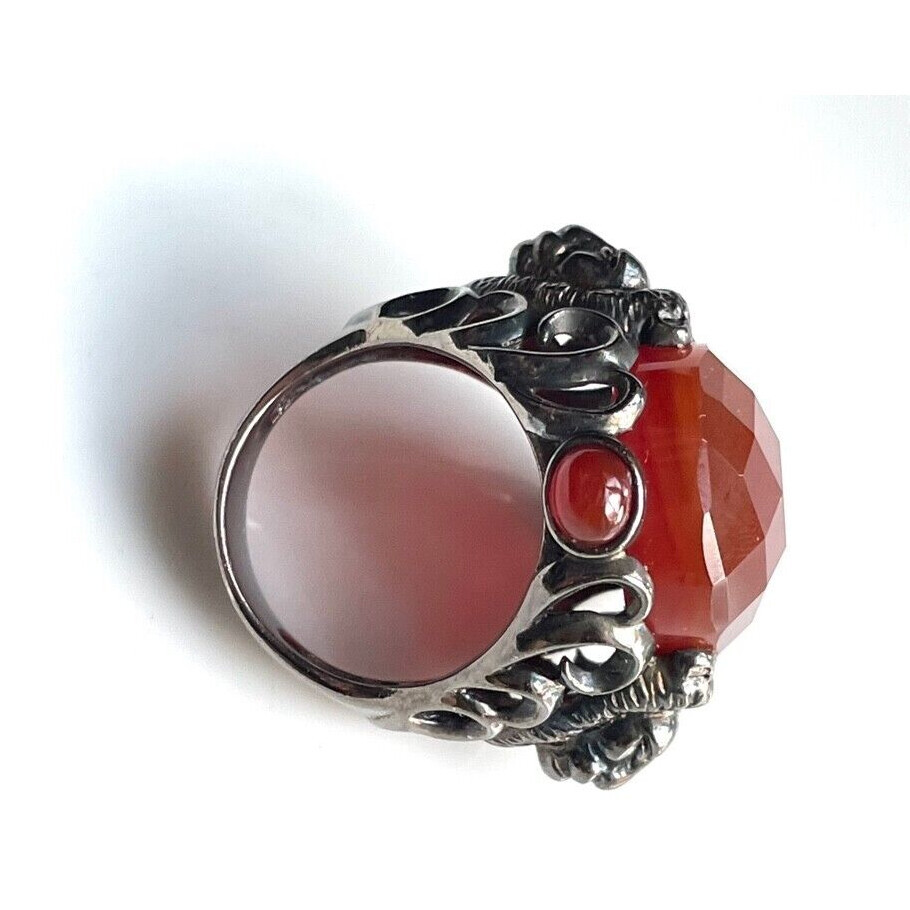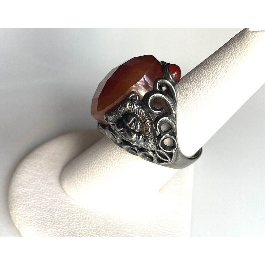 Large 925 Blackened Sterling Silver & Carnelian Lion Heads Ring Size 8 Sky