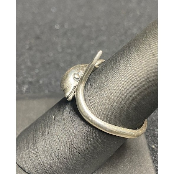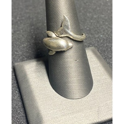 Authentic Kabana 925 Sterling Silver Dolphin Bypass Ring, Adjustable Size Sky