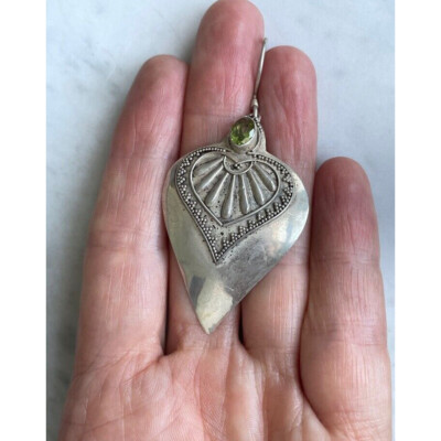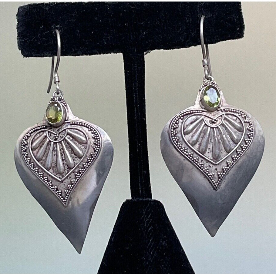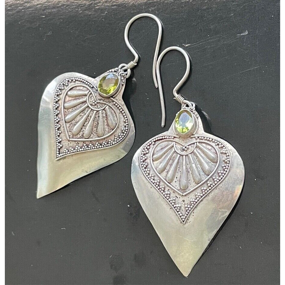 Large 925 Sterling Silver & Peridot Indian Design Earrings Sky