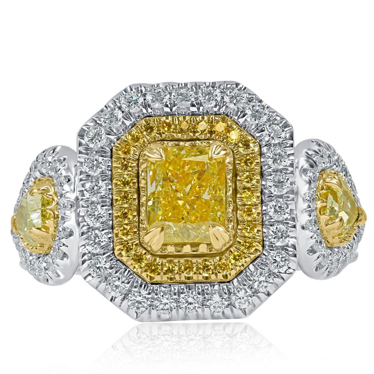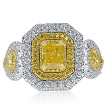 GIA Certificato 1.87 CT Naturale Decorato Giallo Radiante Anello Diamante 18k