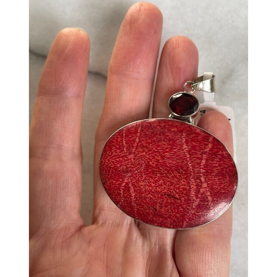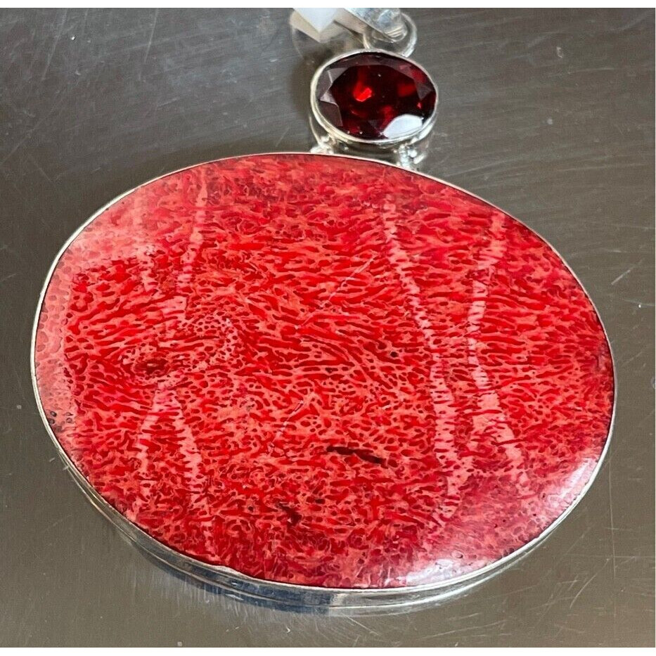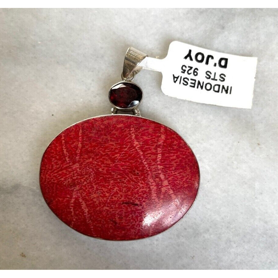 D'JOY 925 STERLING SILVER BAMBOO CORAL ALMANDINE GARNET PENDANT SKY