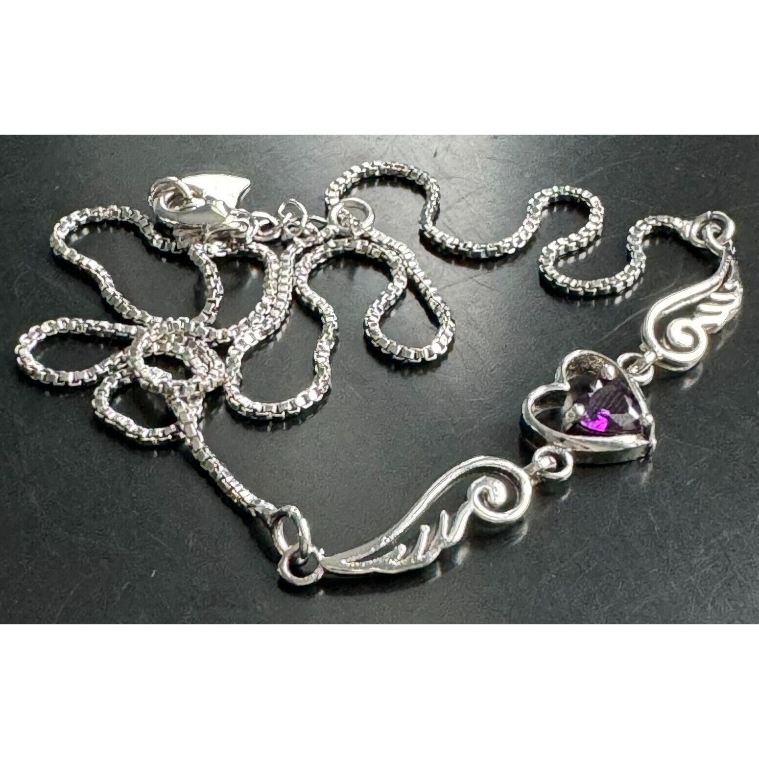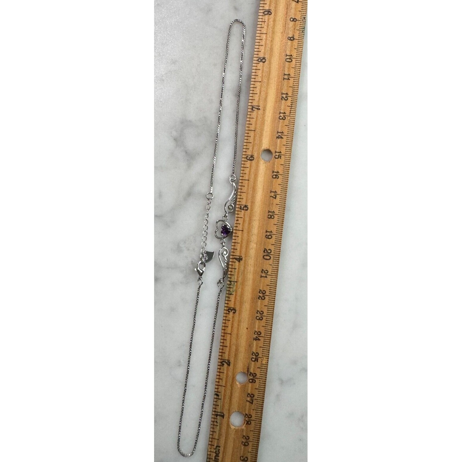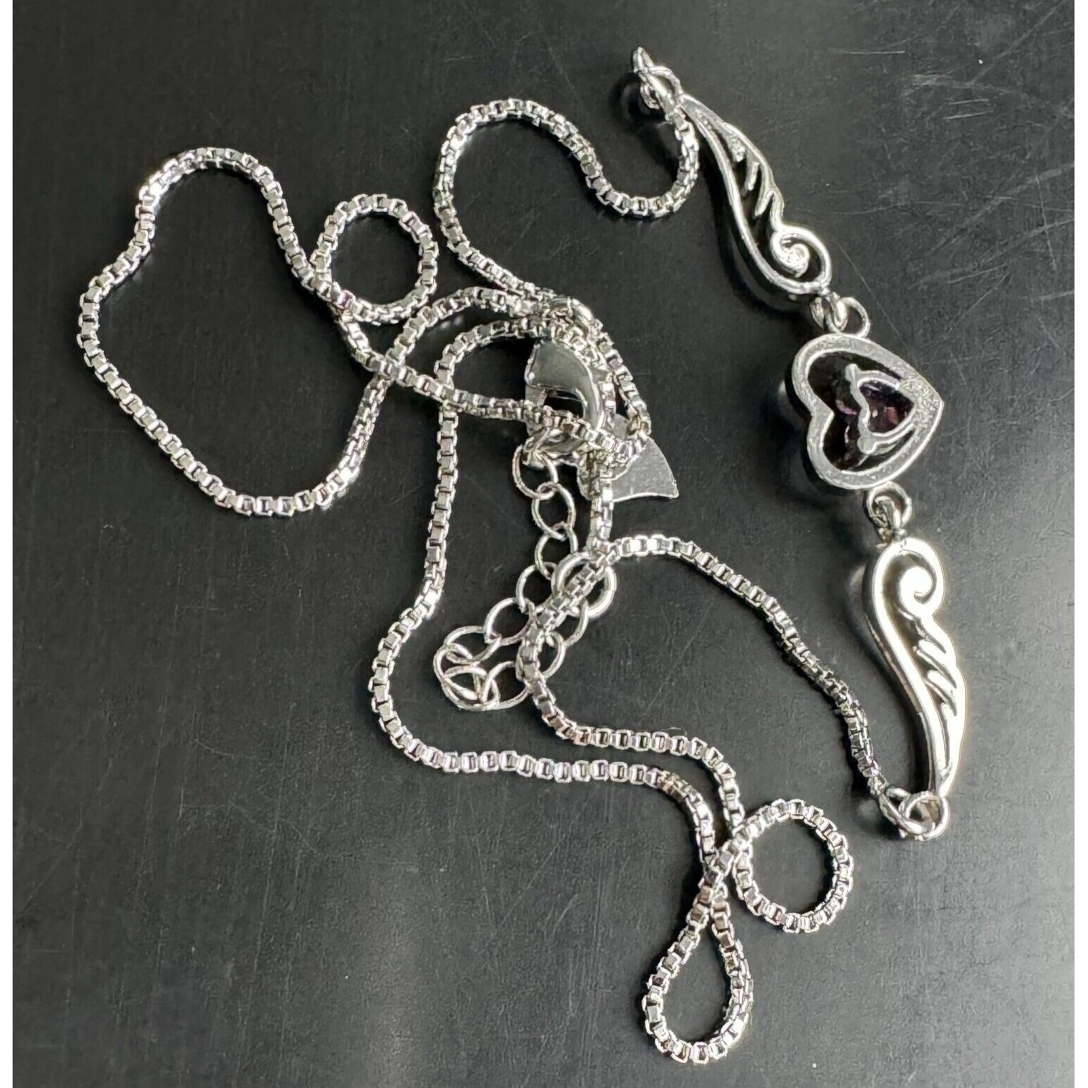 SIZE: APPROX.17'' LONG.THE HEART IS SET WITH PURPLE CZ.