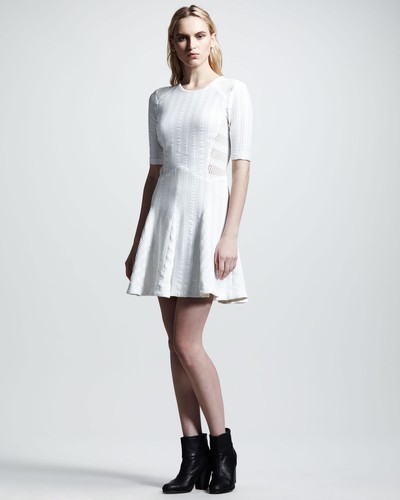 Rag Bone Nikki Mixed-Knit Flare Dress Sz 4 White Ivory
