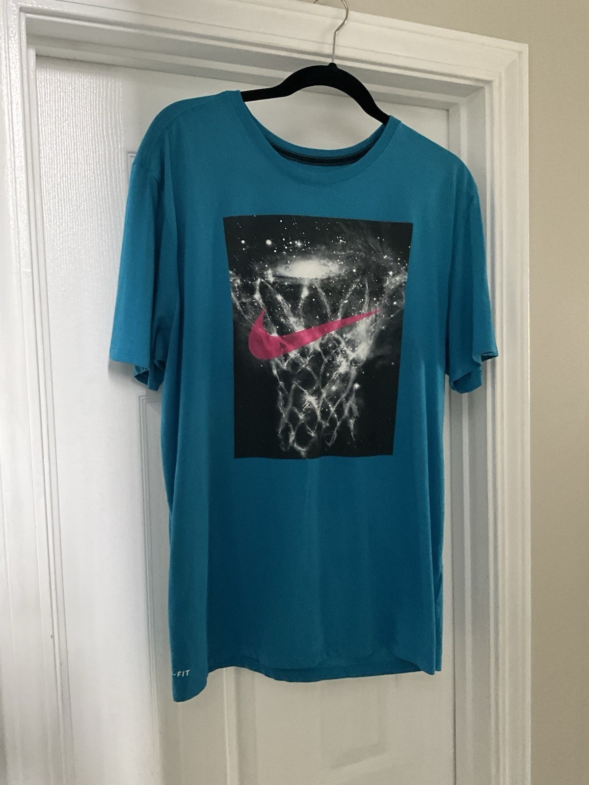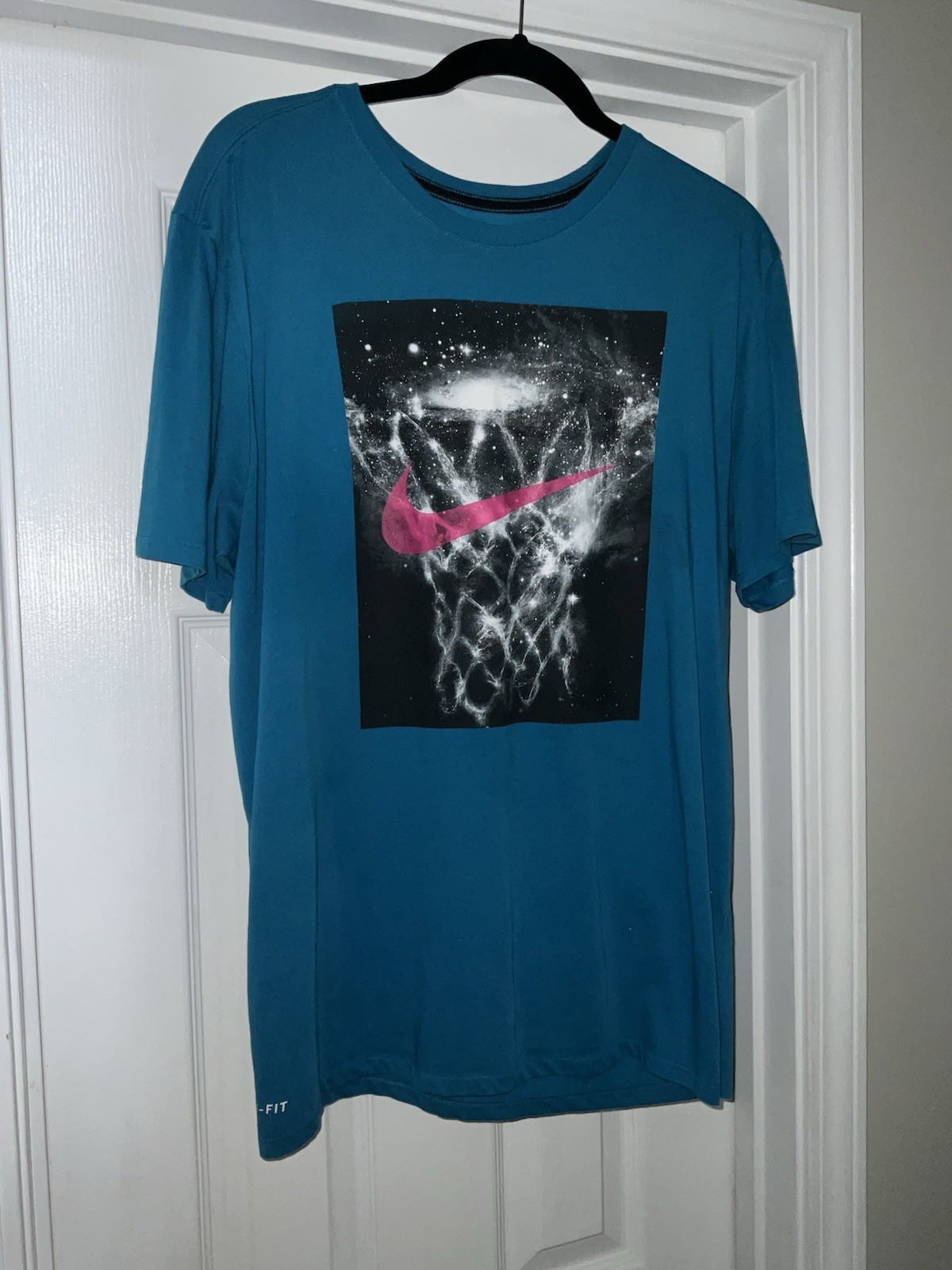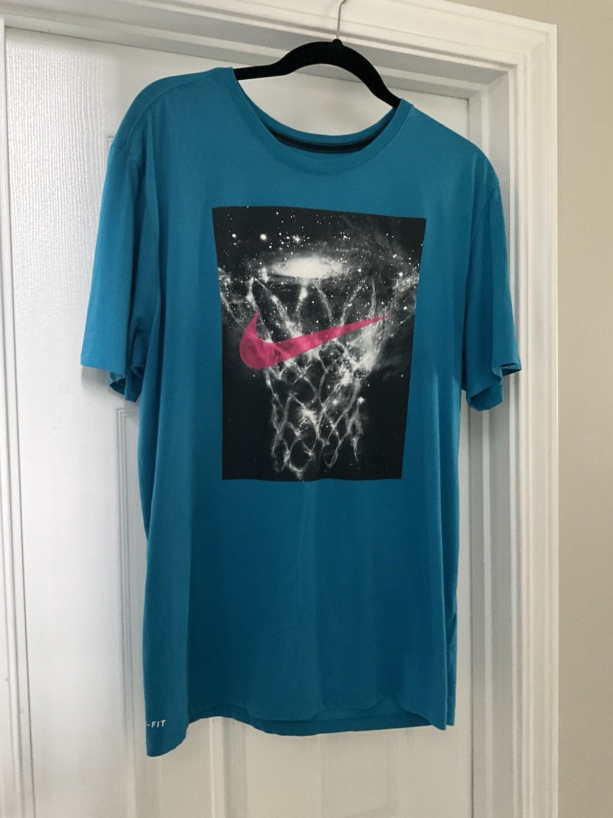 Nike Dri-Fit Basketball Hoop in Space Blue Graphic T-Shirt Men's Size XL