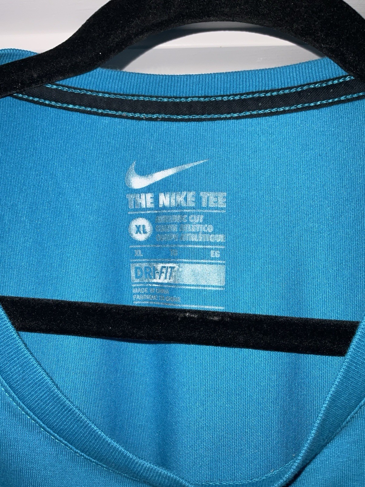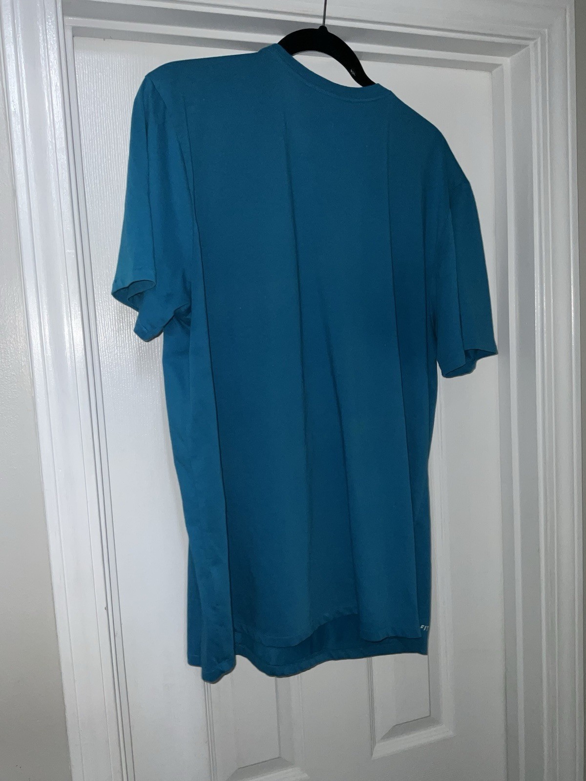 With a tagless and quick-dry design, this Nike Dri-Fit T-Shirt is ideal for basketball enthusiasts looking to stay comfortable on the court. The shirt is machine washable and comes from the Nike Dri-FIT product line. The graphic print adds a unique touch to the shirt, making it a great addition to any wardrobe. Pit to pit -22 1/2 inches Length-29 inches.