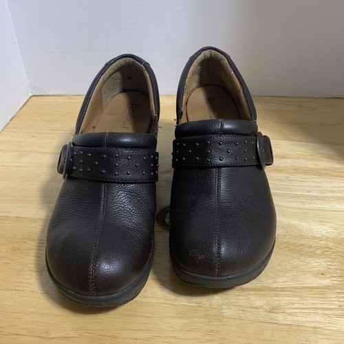 Bjorndal Clogs Allana Size 8M Brown Leather Studded Buckle Slip On Mules