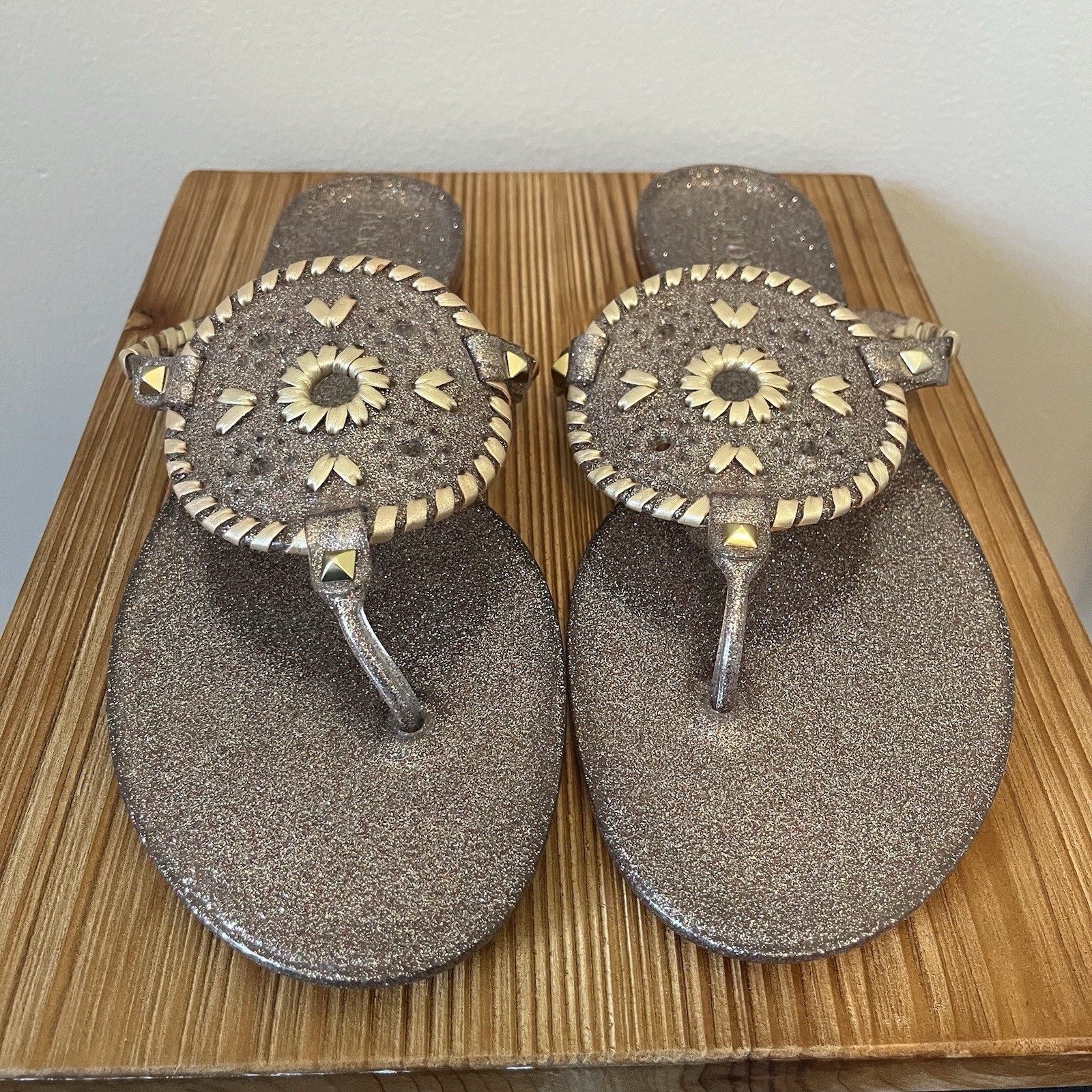 Jack Rogers Gold Glitter Sparkle PVC Jelly Thong Sandals Size 11