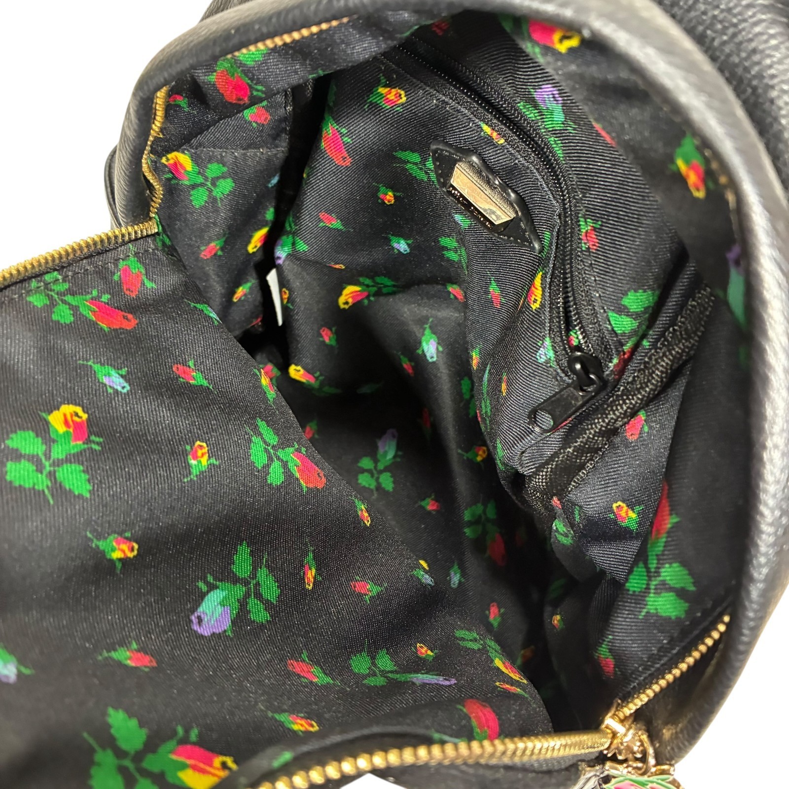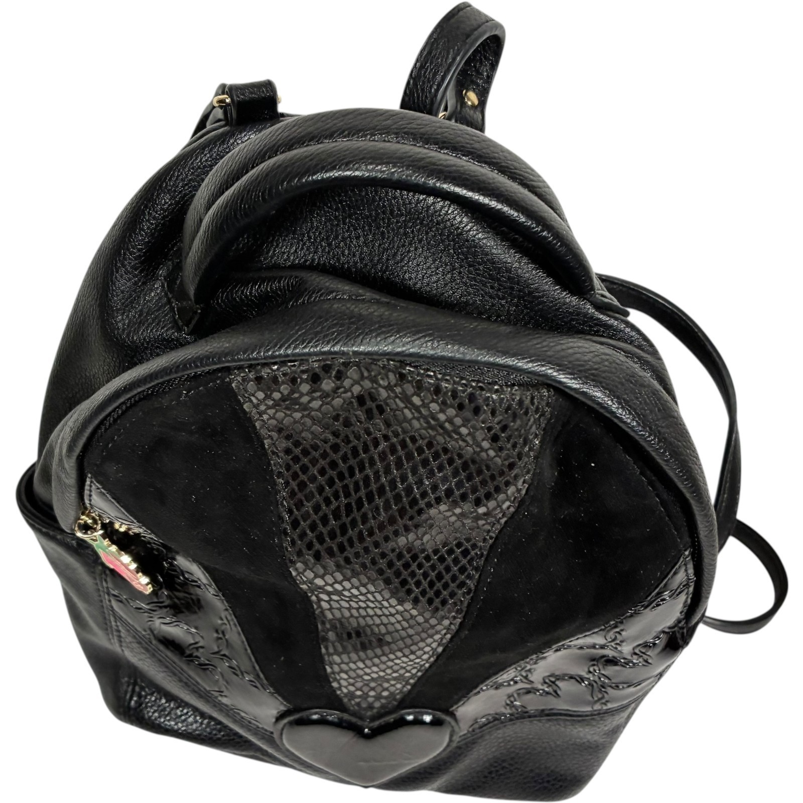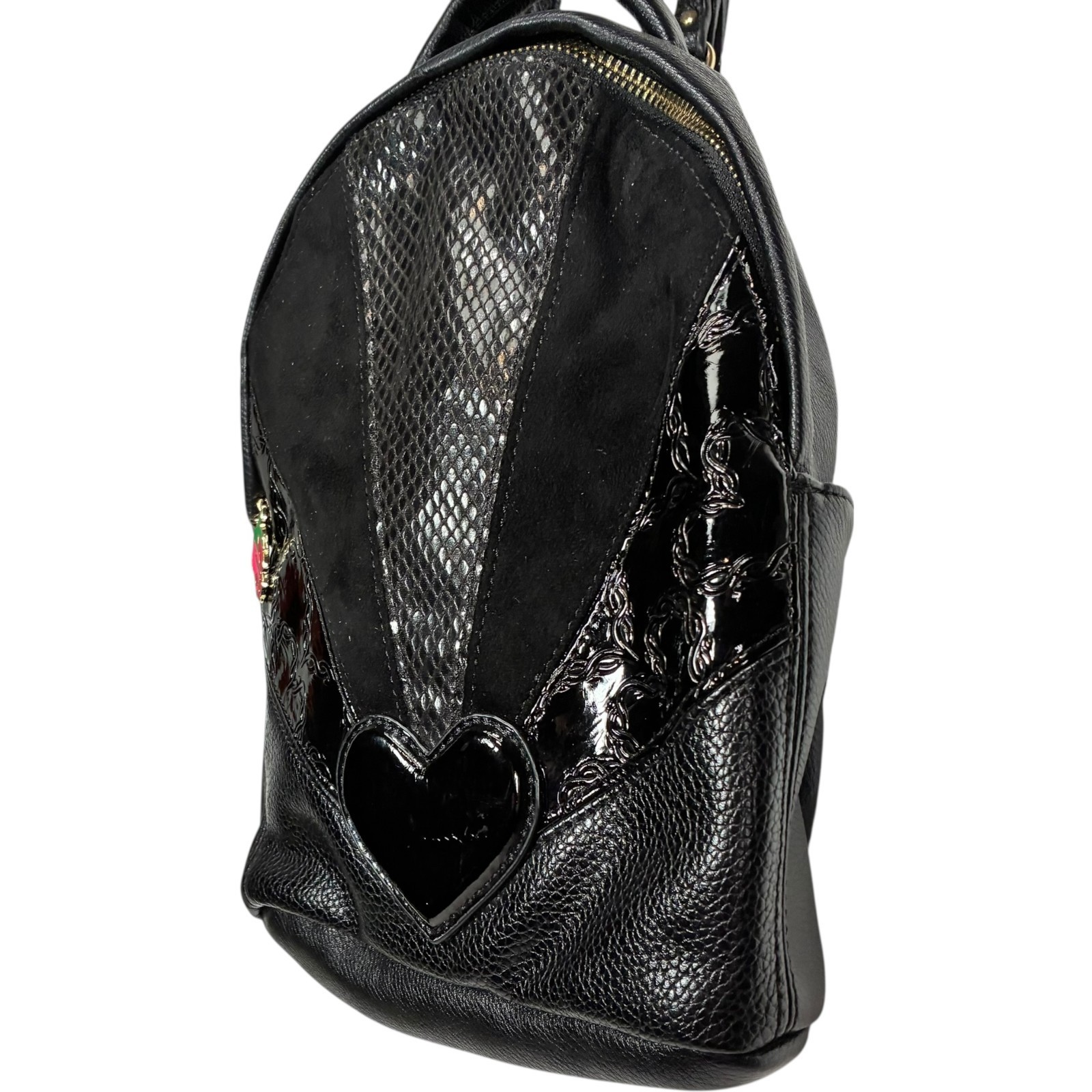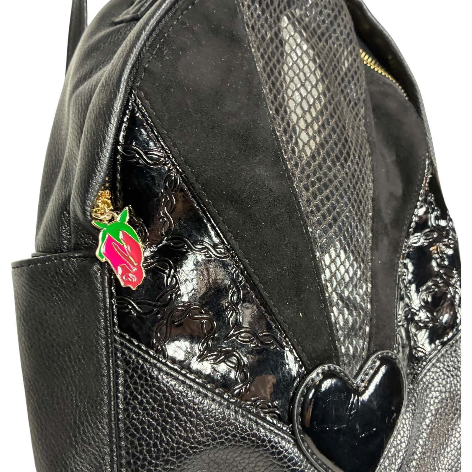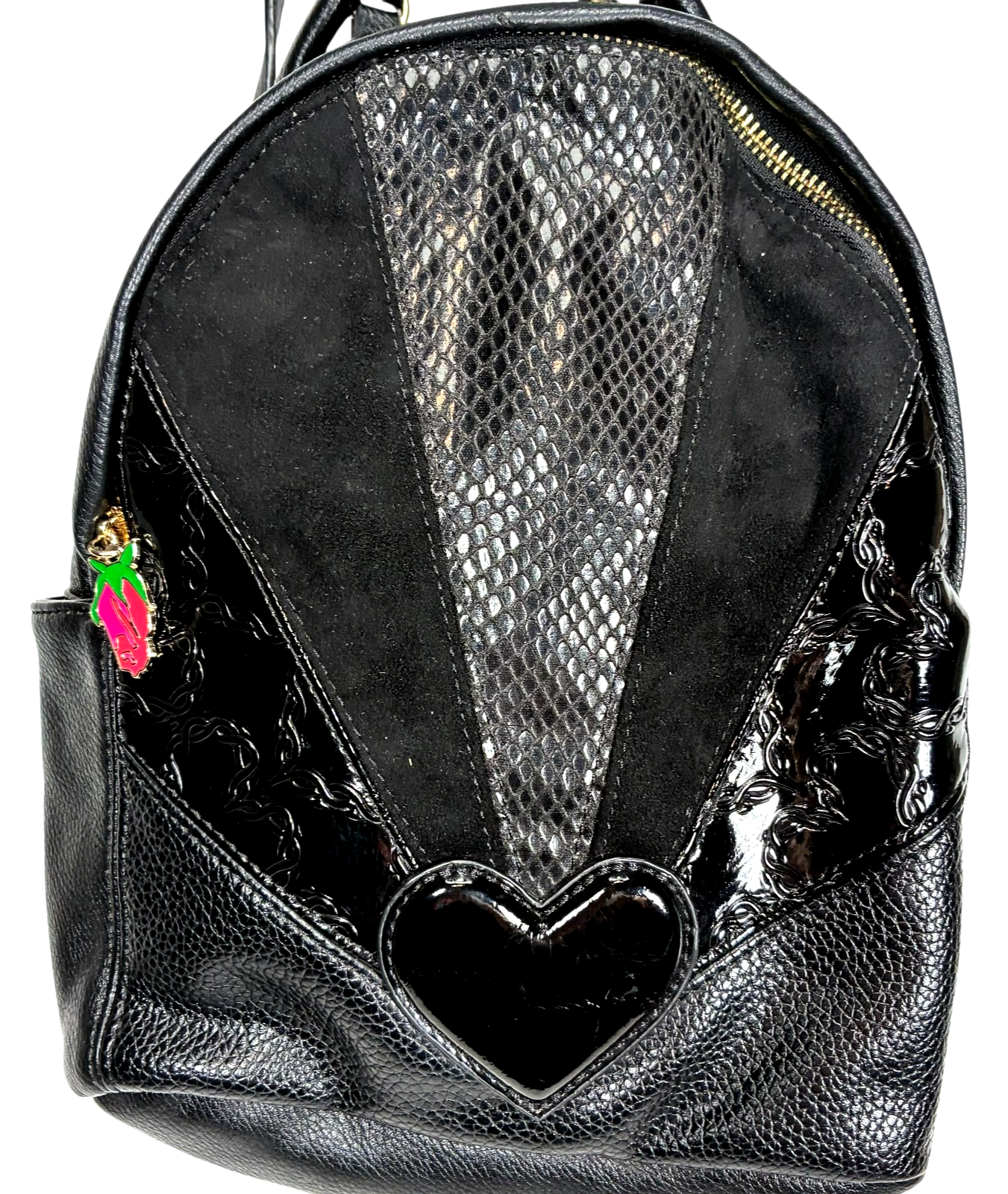 Betsey Johnson Mini Backpack Black Faux Suede/Leather Heart Starburst Rose Charm