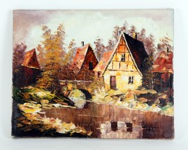Untitled Water Mill by Wagner Oil Painting on Canvas 16" x 20" Unframed
