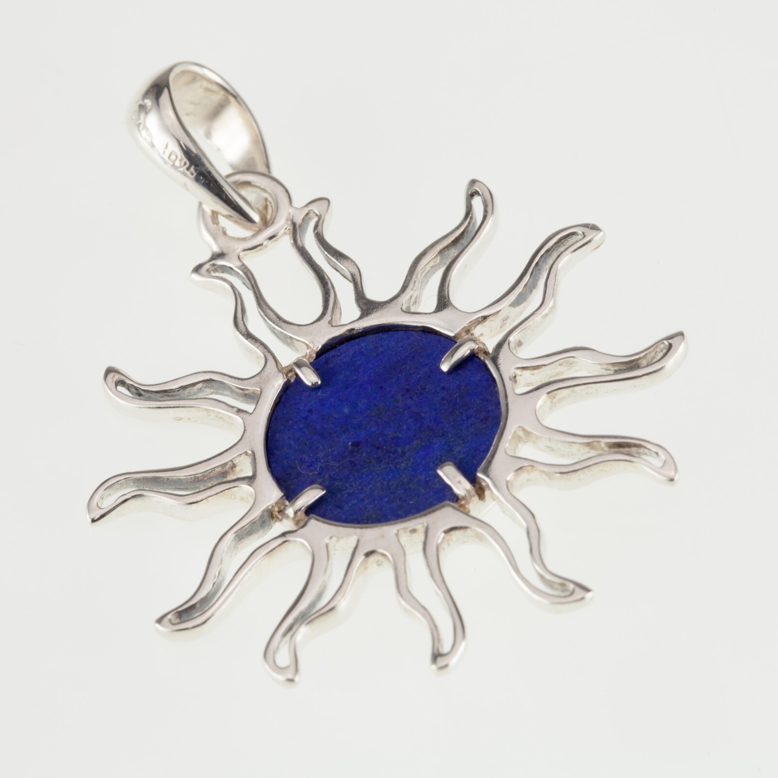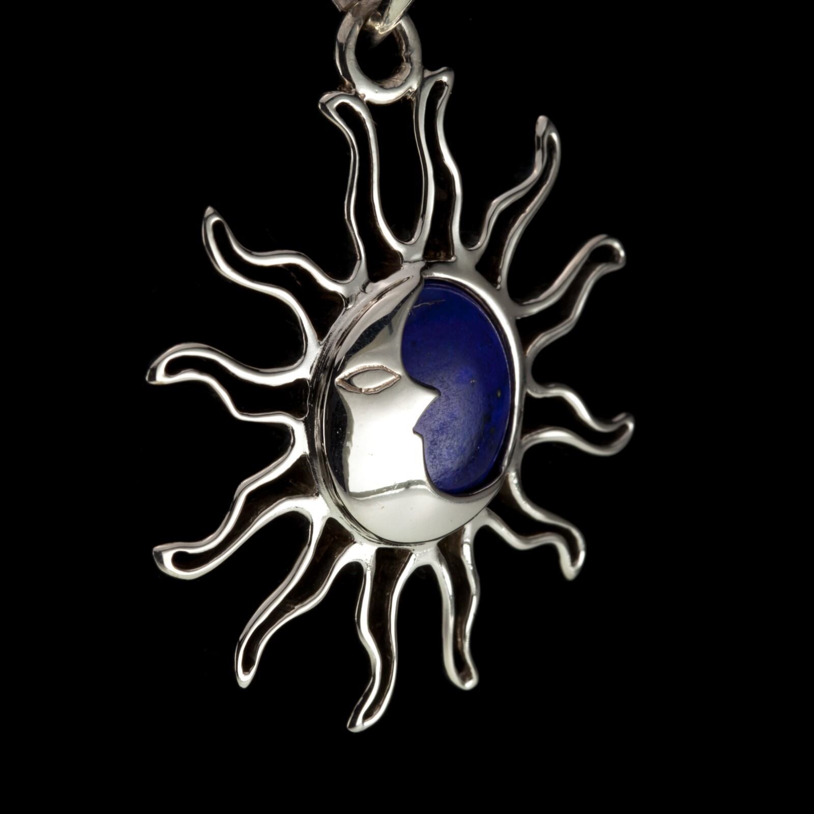 Unique Sterling Pendant with a beautiful Lapis and overlapping Moon at center with accenting Sun Rays