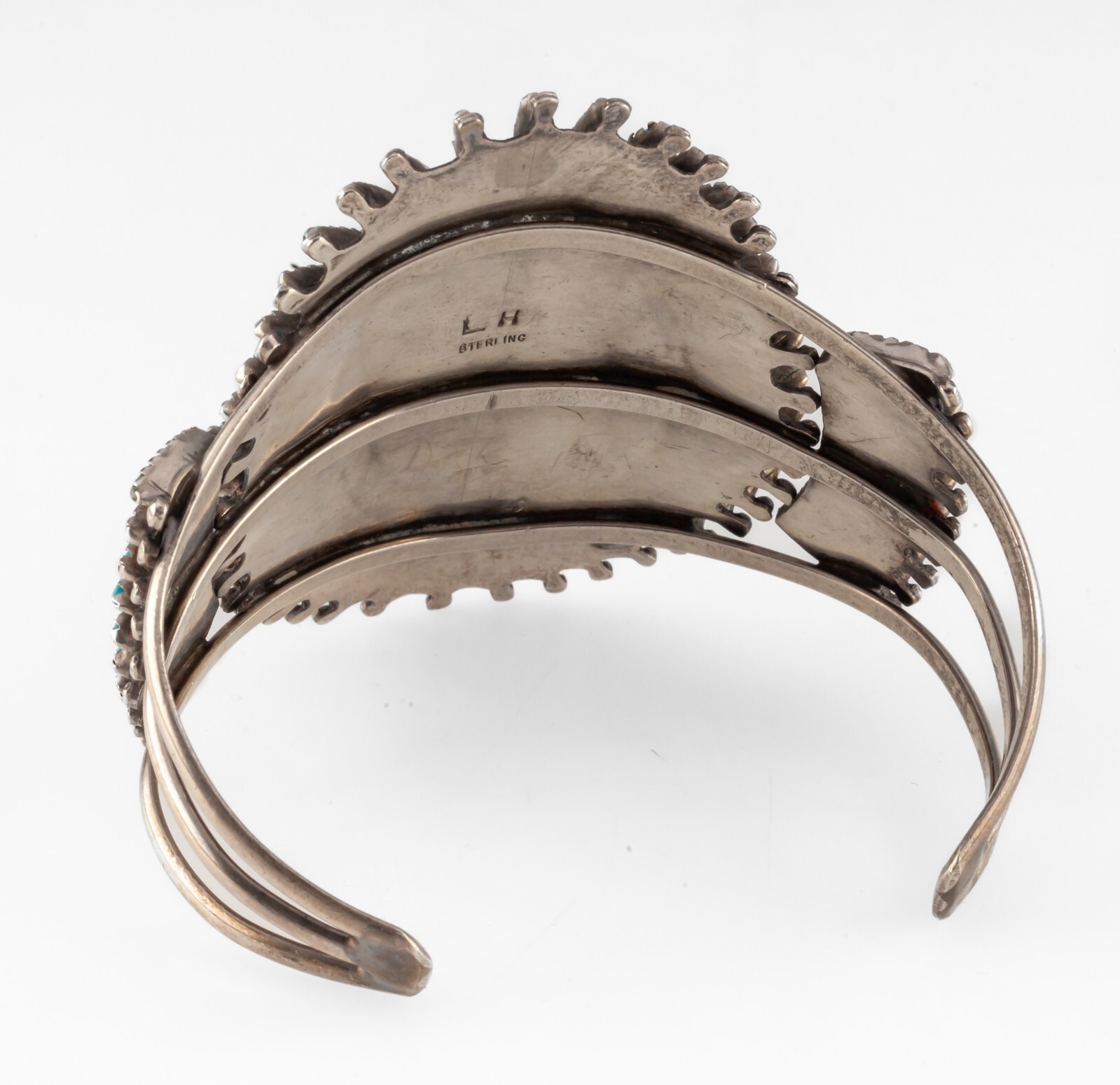 Zuni Turquoise Needlepoint Cuff Bracelet Signed L H in Sterling 70 mm Wide