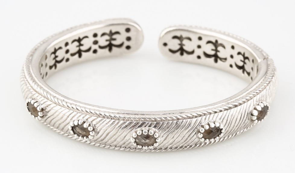 Judith Ripka Sterling Silver Smoky Topaz Hinged Cuff Bracelet Beautiful Piece