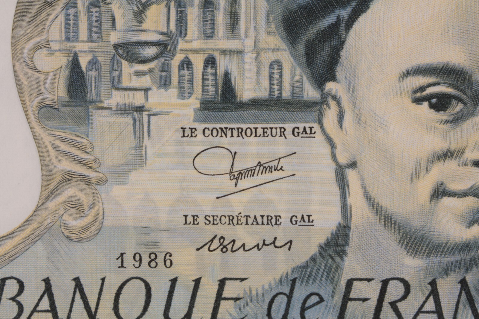 1986 France 50 Franc (50 ?) note, Almost Uncirculated condition (AU)