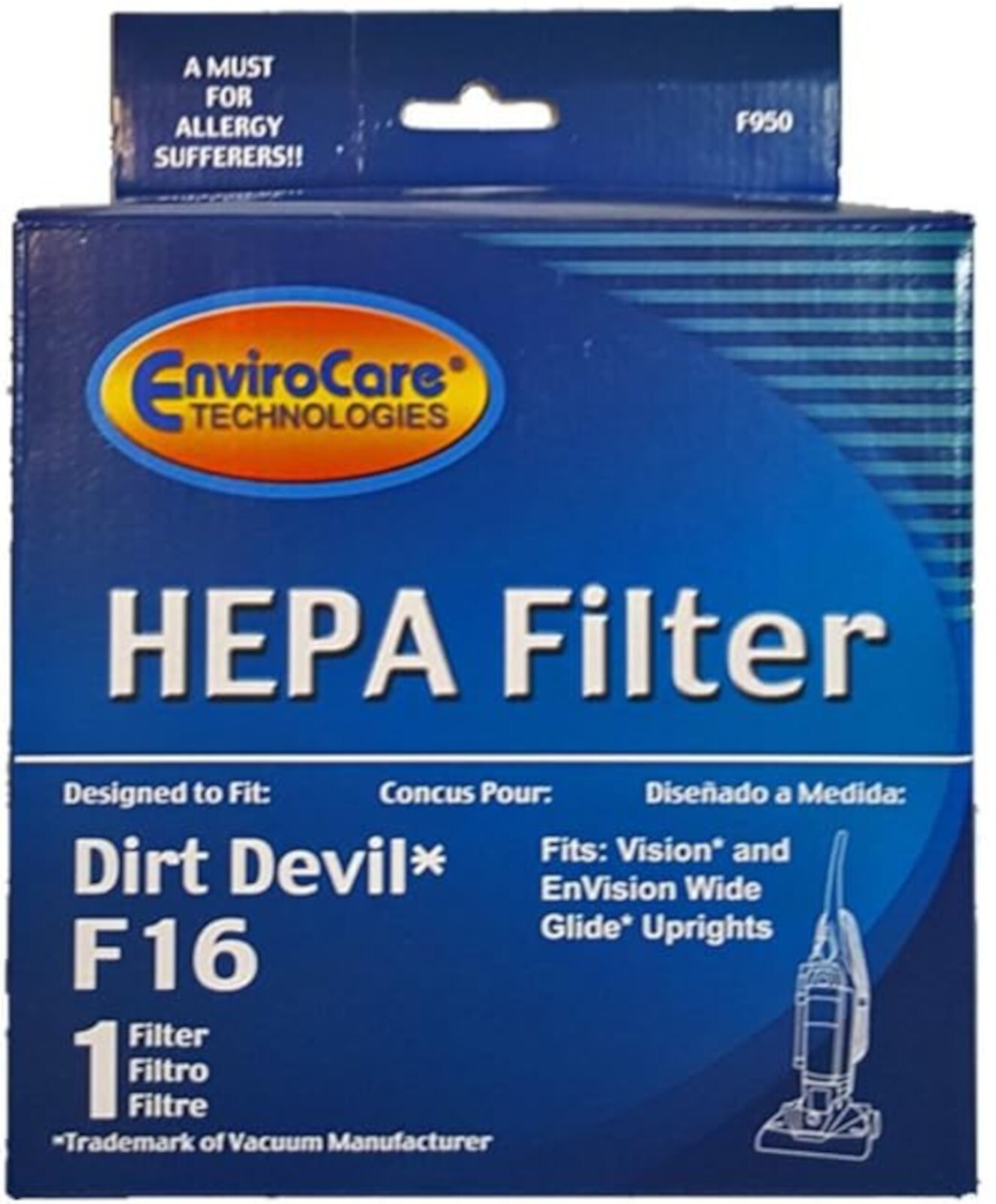 Fits Dirt Devil Vision, And Envision Wide Glide Upright Bagless Vacuum Cleaners.